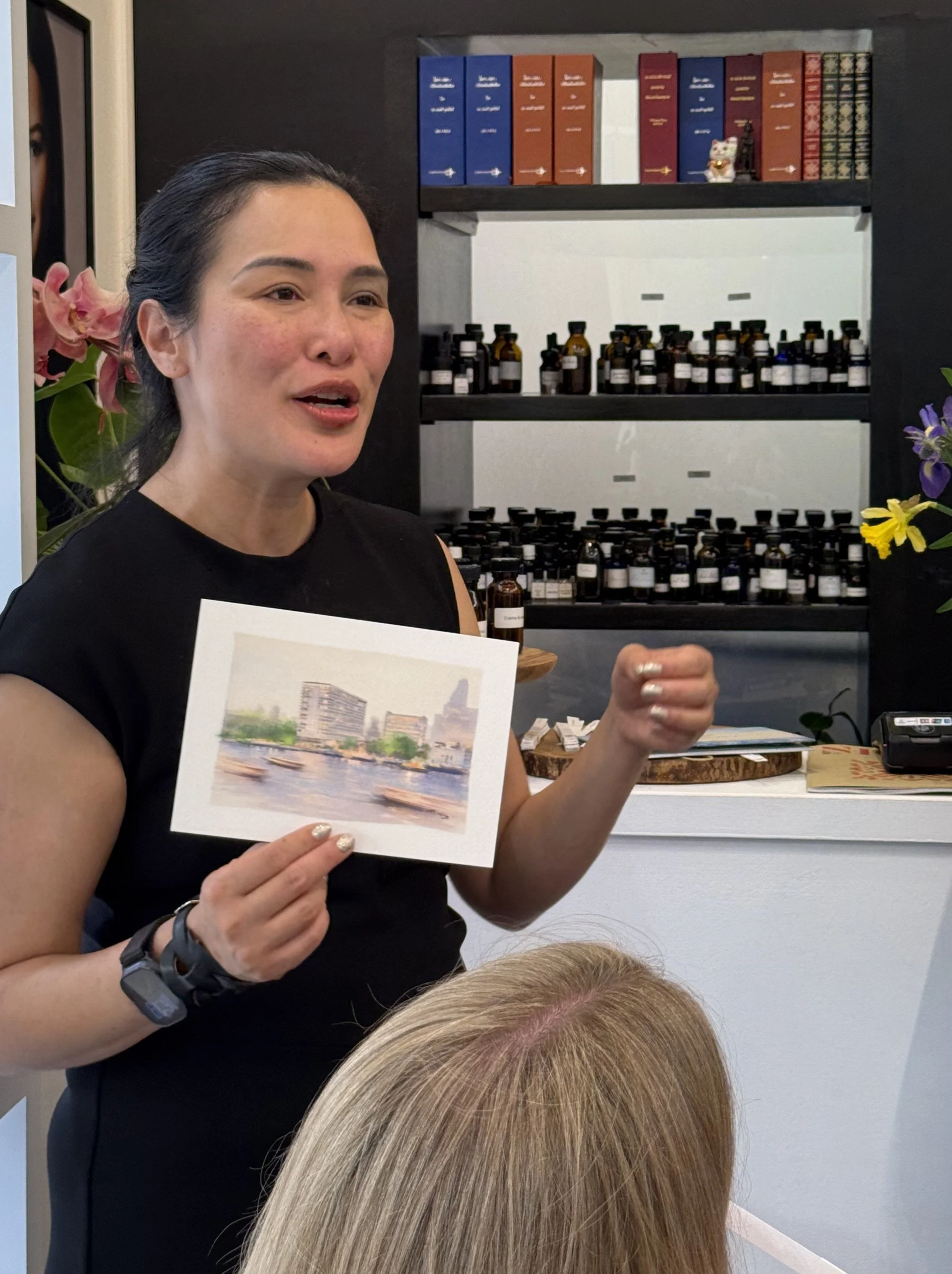 One of the most memorable off-site moments for me was a Dusita masterclass led by Pissara Umavijani. She presented Light of Bangkok, created in collaboration with Mandarin Oriental, Bangkok, to mark the hotel’s 150th anniversary. The fragrance is a woody aromatic composition built around ingredients cherished in Thailand, especially lemongrass, which is deeply connected to everyday life in Thailand and gives the fragrance a fresh and distinctive brightness. And hearing Pissara speak about the raw materials while smelling them in person gave the perfume additional depth.