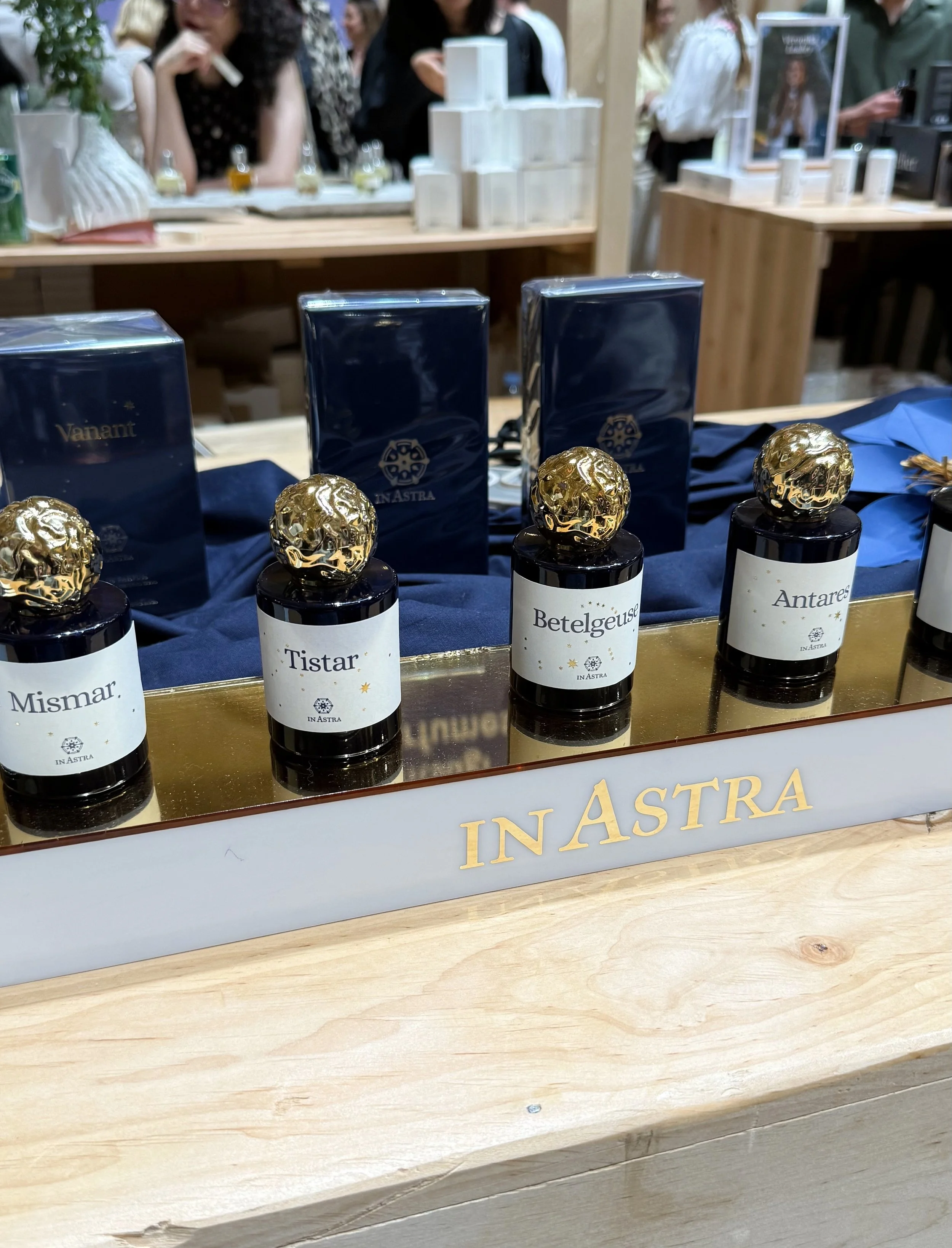 In Astra offered a different perspective. The Italian house builds its universe around the poetry of the stars. My favorite was Betelgeuse, aromatic coriander-iris-and-coffee composition inspired by the red supergiant star in Orion. It has both softness and depth, with a beautiful tension between powdery elegance and darker textures — something that made me fall in love from the very first spray.