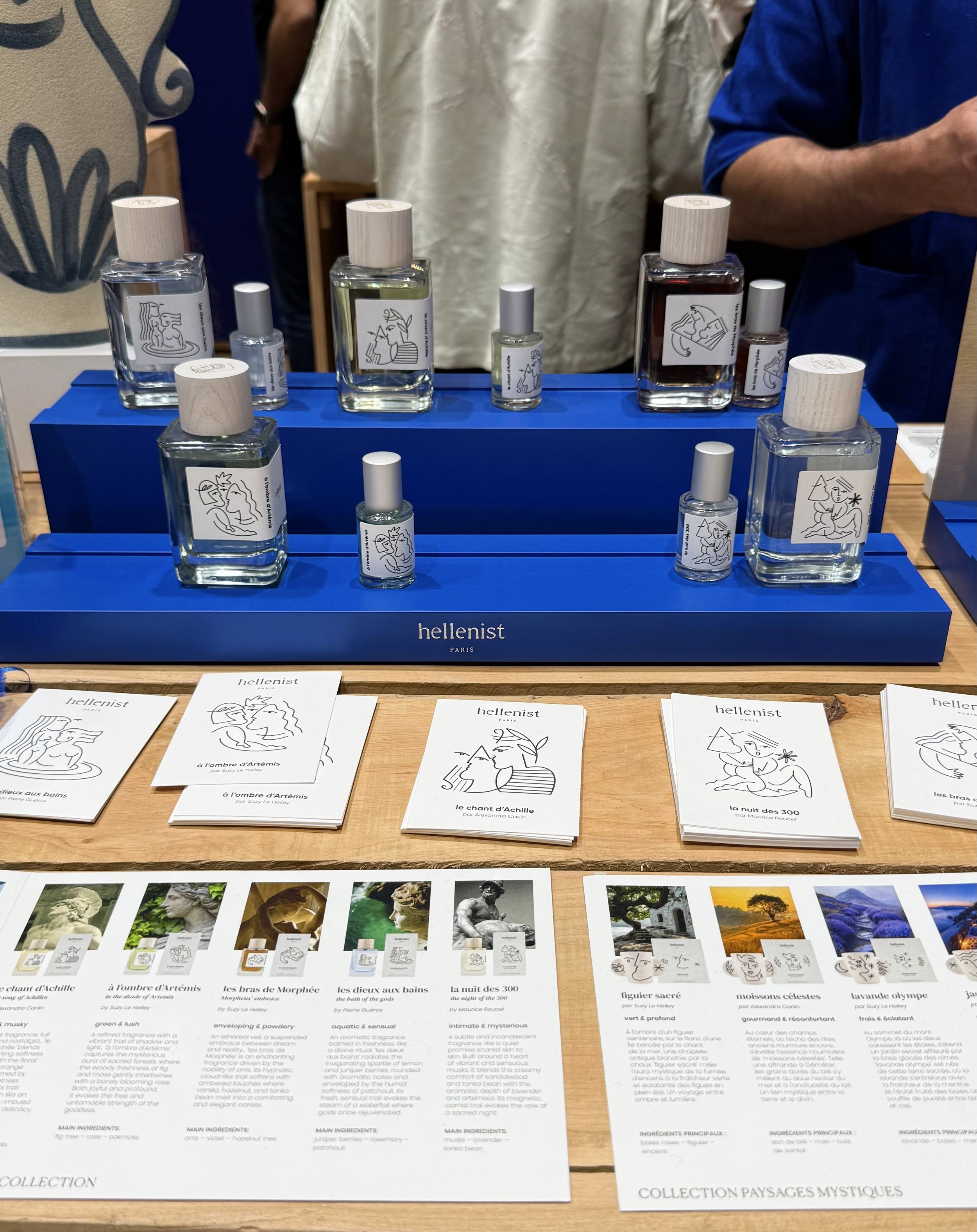 Hellenist, inspired by Greece, its landscapes, myths, and cultural memory, merges perfume and art with impressive naturalness. I was especially taken by À l’Ombre d’Artémis and Le Chant d’Achille — vibrant fragrances that lingered in my mind long after I had left the stand. And the candles deserve a mention of their own, beautifully designed, artistic, and entirely in tune with the brand’s Mediterranean identity.